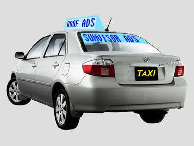 Taxi Ads on the Roof Top and as a Sunvisor Ad